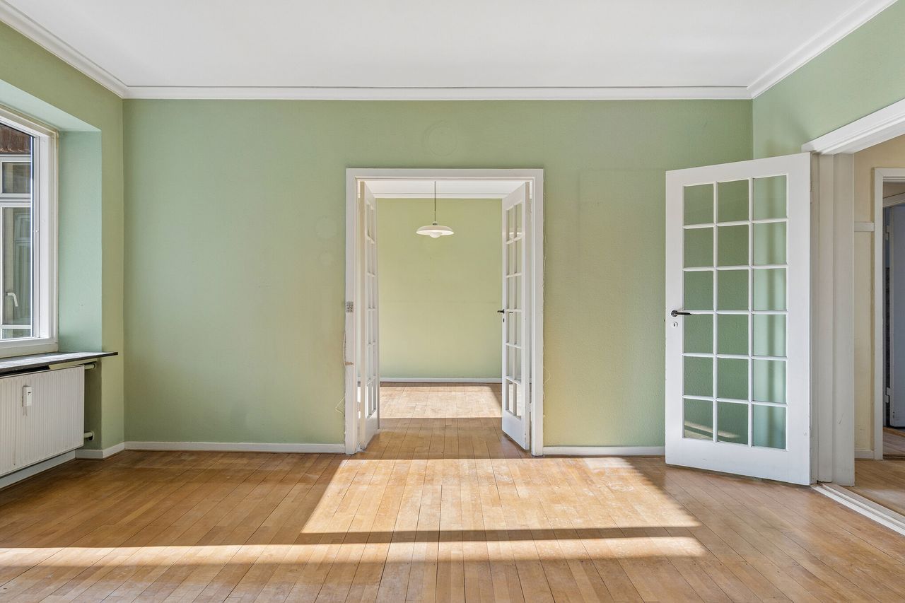 Lejligheden sælges som 1.gangssalg og trænger til nogen istandsættelse.