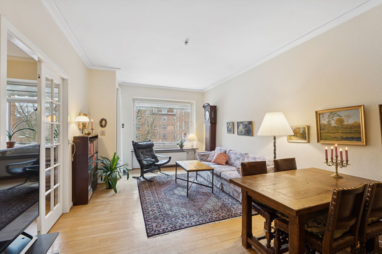 Lys 3 værelses ejerlejlighed på 71 m2 i den eftertragtede ejendom Aksel Møllers Have. Lejligheden er beliggende i nr 28 med dejlig sydvendt altan ud mod Bjarkes Plads - d.v.s. tilbagetrukket fra vejen.